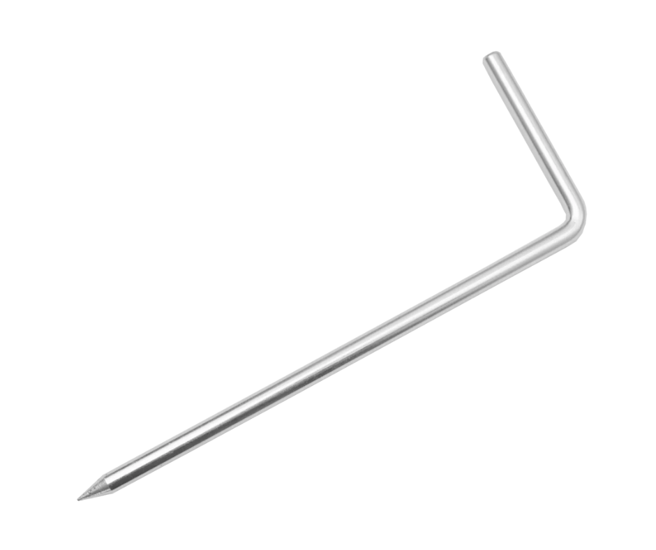 Con 25 cm de longitud, su diseño permite una penetración eficaz en distintos tipos de terreno (tierra suelta, gravilla, arcilla), garantizando una conexión firme y estable durante la medición. Está fabricada con una aleación especial resistente a impactos mecánicos y corrosión, lo que asegura su durabilidad incluso en uso intensivo y condiciones ambientales adversas.