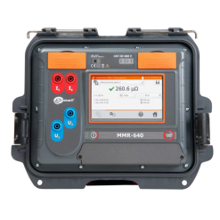 El MMR-640 de Sonel es un microhmímetro digital portátil de alto rendimiento diseñado para medir resistencias extremadamente bajas, desde 0,1 µΩ hasta 1999,9 Ω, utilizando el método de cuatro terminales (Kelvin), garantizando precisión incluso en condiciones con alto ruido electromagnético.