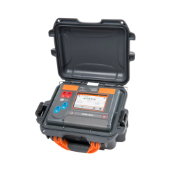 El equipo cuenta con doble aislamiento según IEC 61010-1 y resistencia a tensiones externas de hasta 600 V CA por 10 segundos. Su estructura compacta y robusta (318 x 257 x 152 mm, peso aprox. 3,5 kg) lo hace adecuado para uso en terreno exigente.