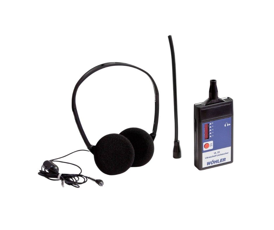 El detector de fugas Wöhler UL 23 (N.º 3620) permite identificar fugas mínimas en sistemas industriales y de edificación gracias a la detección de ondas ultrasónicas generadas por turbulencias de gas o aire.
