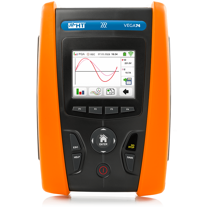 El VEGA74 es un analizador portátil de red eléctrica monofásica y trifásica, diseñado para medir, registrar y diagnosticar fenómenos eléctricos complejos como armónicos, caídas de tensión, desequilibrios y distorsión total armónica (THD%). Gracias a su interfaz táctil a color, estructura de íconos y software de gestión dedicado, es una herramienta esencial para auditorías energéticas, mantenimiento predictivo y cumplimiento normativo SEC en instalaciones críticas.