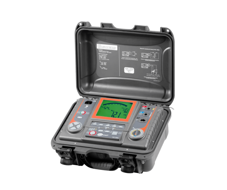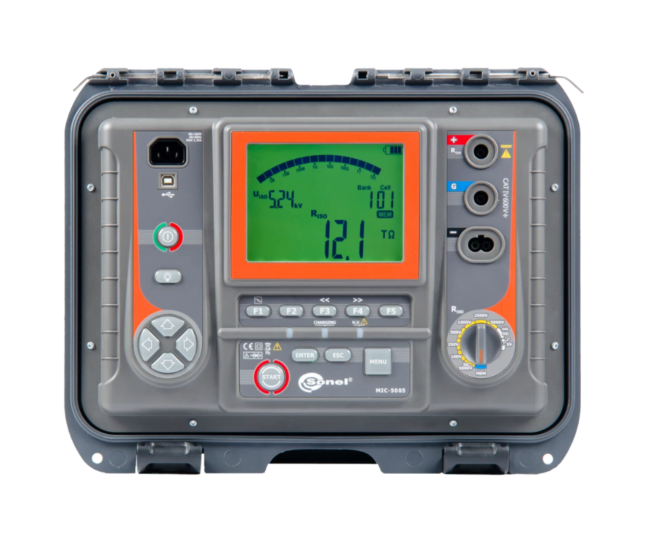 El medidor Sonel MIC-5005 está diseñado para realizar mediciones precisas de resistencia de aislamiento hasta 15 TΩ, incluso en condiciones electromagnéticas adversas, gracias a sus filtros digitales avanzados y algoritmos exclusivos de reconocimiento de tensión. Ideal para instalaciones industriales, eléctricas o de telecomunicaciones donde se requiere alta fiabilidad, el equipo soporta tensión de prueba seleccionable desde 50 V hasta 5000 V, con paso ajustable según rango (10 V o 25 V).
