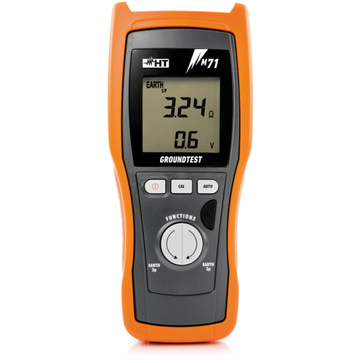 El M71 es un instrumento portátil para la medición de resistencia de tierra en instalaciones eléctricas conforme a la normativa RIC N°06 y estándar IEC/EN61557-5. Su diseño permite ejecutar pruebas de puesta a tierra en entornos urbanos o industriales donde el acceso al terreno es limitado, gracias a la posibilidad de aplicar tanto el método voltiamperimétrico a 3 hilos como el método a 2 hilos, utilizando masas metálicas existentes como referencia (tuberías, estructuras, neutro, etc.).