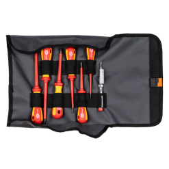 Kit Esencial para Técnicos de Medición: incluye pinza amperimétrica Sonel CMP-200F y juego de destornilladores Sonel NZ-2, ideal para mediciones precisas y montaje seguro.